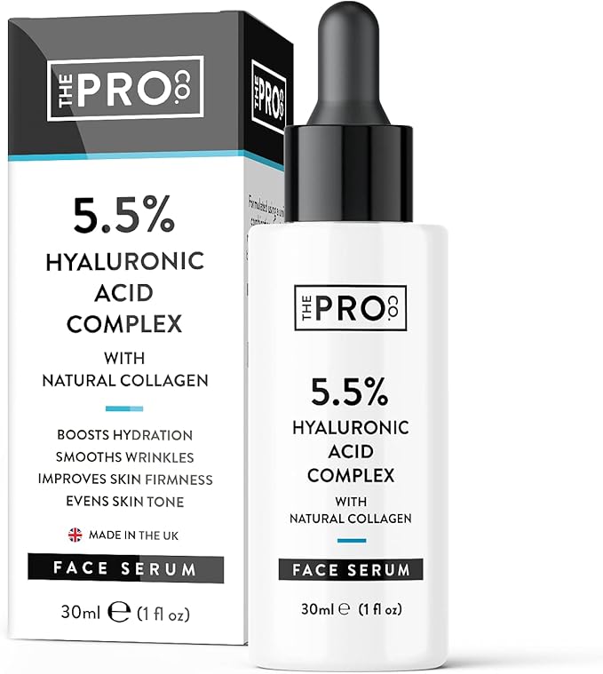 Сыворотка с гиалуроновой кислотой 5,5% - из 4 типов гиалуроната натрия - с веганским коллагеном и аминокислотами - увлажняет, осветляет, укрепляет кожу - антивозрастная сыворотка для лица против морщин - сделано в Великобритании.