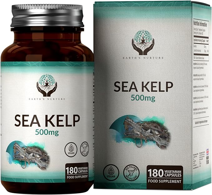 Йодная добавка из морских водорослей | 180 добавок из морских водорослей — 500 мг водорослей на порцию | Высокоэффективные таблетки из морских водорослей | Морские водоросли Йод | Без ГМО и глютена | Сделано в Великобритании