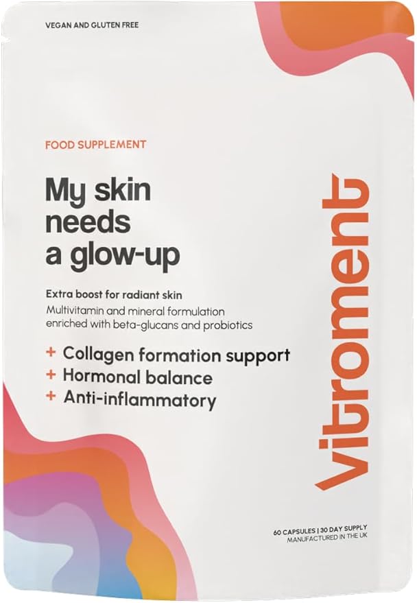 Vitroment Vitamin Capsules с пробиотиками для женщин, поддержка образования коллагена, добавка для сияющей кожи и гормонального баланса, противовоспалительное средство с экстрактом куркумы - 60 капсул, сделано в Великобритании