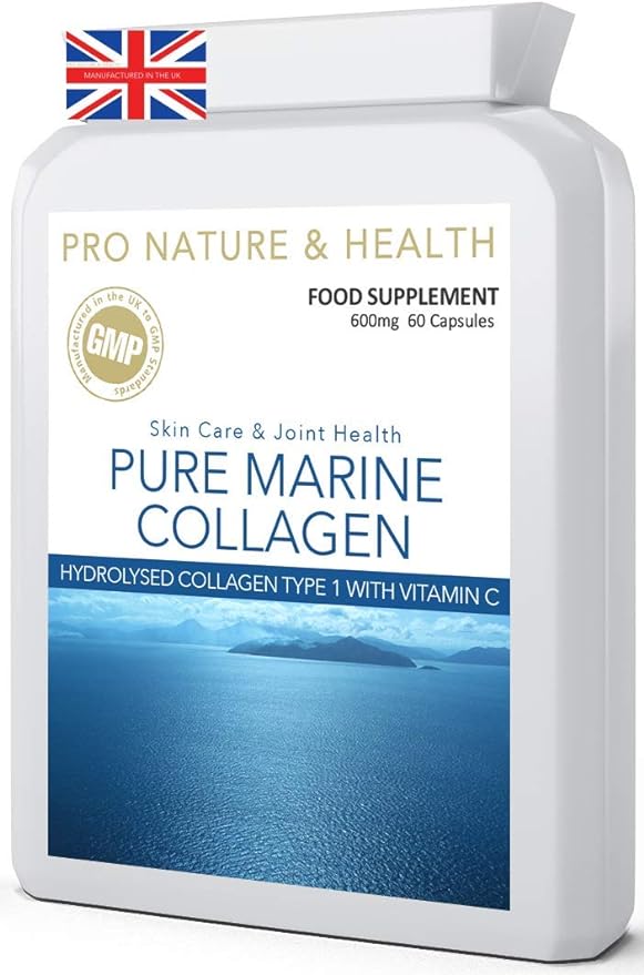 Чистый морской коллаген | 600 мг х 60 капсул | Здоровые волосы, кожа и ногти | Гидролизованный морской коллаген премиум-класса типа 1 с витамином С | Коллагеновая добавка для женщин и мужчин | Сделано в Великобритании