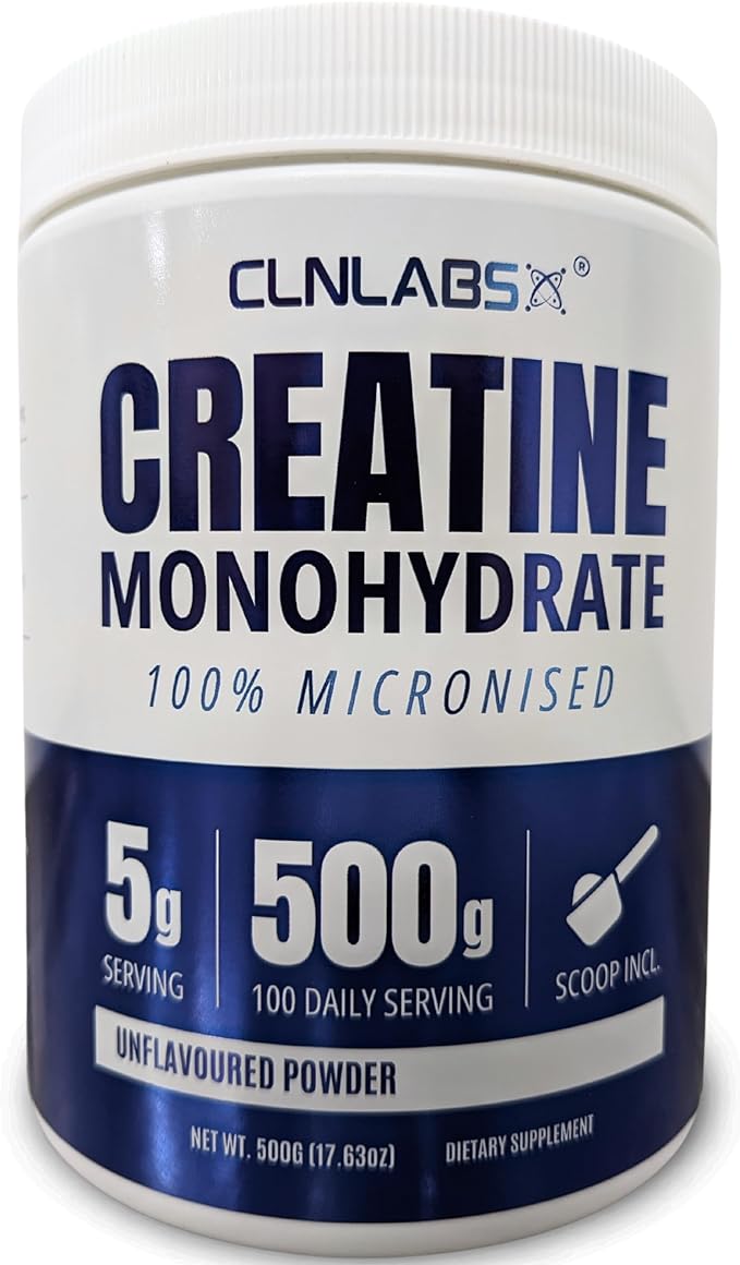Порошок креатина моногидрата — банка 500 г (200 меш) | Прекрасный сорт, чистый и легко смешивается | Включает в себя совок | Без вкуса | Сделано в Великобритании компанией CLN Labs.