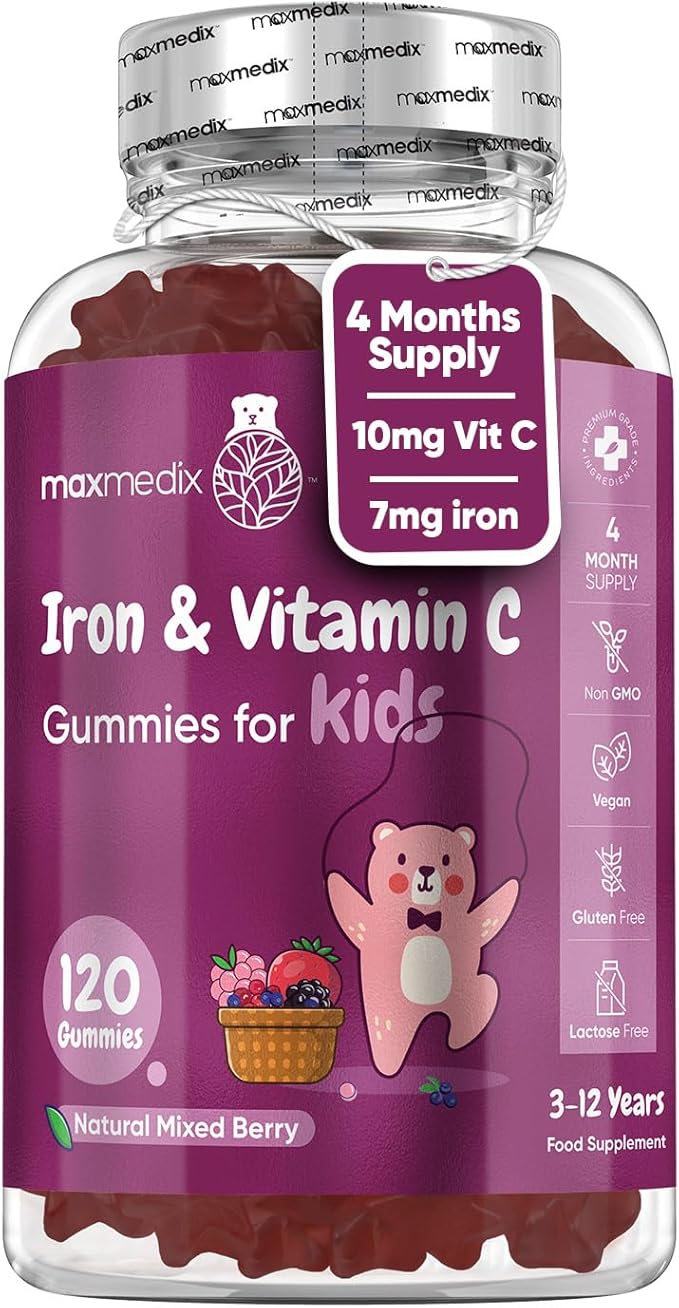 Жевательные конфеты с железом и витамином С для детей - Запас на 4 месяца - 120 жевательных таблеток - Натуральный смешанный ягодный вкус - Детские жевательные конфеты с железом для энергии и иммунной системы - Веганские добавки с железом для детей - без
