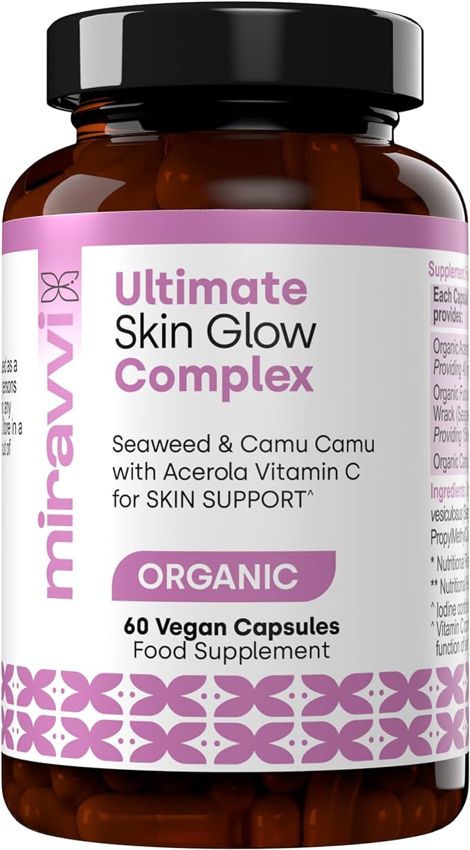 Miravvi Skin Glow Complex | Морские водоросли и каму-каму с витамином С ацеролой для идеального сияния кожи | Органическая добавка | Веганский комплекс | Высокая прочность | Сделано в Великобритании | Запас на 60 дней