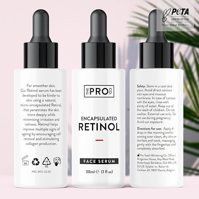 Об этом товаре ◇ МОЩНАЯ ФОРМУЛА РЕТИНОЛА – Эта формула на 96% состоит из сыворотки с ретинолом натурального происхождения, которая была разработана, чтобы быть более щадящей для кожи. Ретинол является чрезвычайно мощным ингредиентом, который помогает улучшить множественные признаки старения. Он стимулирует обновление клеток в коже и стимулирует выработку коллагена, обеспечивая коже максимальное увлажнение и повышенную эластичность, сводя к минимуму мелкие и глубокие морщины, делая кожу более гладкой и упругой. ◇ УЛУЧШЕННАЯ АБСОРБЦИОННАЯ ТЕХНОЛОГИЯ МИКРОИНКАПСУЛИРОВАННОГО РЕТИНОЛА - в нашей сыворотке ретинола используется передовая технология 100% натурального микроинкапсулированного ретинола. Ретинол заключен в умную систему носителей, которая защищает молекулу и позволяет ей медленно высвобождать активный ингредиент в кожу, что означает, что он может проникать глубже в слои кожи, обеспечивая максимальное впитывание. ◇ ОДОБРЕНО PETA CRUELTY FREE И УКАЗАНИЯ ПО ПРИМЕНЕНИЮ – Наш 100% веганский продукт был одобрен крупнейшей организацией по защите прав животных в мире, PETA, поэтому вы можете спокойно делать покупки, зная, что наши продукты полностью не тестируются на животных. Для достижения наилучших результатов мы рекомендуем наносить 4 капли утром на чистую сухую кожу лица и шеи, мягко массировать кончиками пальцев до полного впитывания сыворотки. ◇ ЭКОЛОГИЧЕСКОЕ ОБЯЗАТЕЛЬСТВО PRO CO. - Мы стремимся нейтрализовать наш углеродный след и решать экологические проблемы, создавая экологически чистую упаковку и используя ингредиенты природного происхождения. Небольшое количество пластика, которое мы используем, полностью пригодно для вторичной переработки, что сводит к минимуму наше воздействие на окружающую среду. ◇ ПОЧЕМУ ИМЕННО PRO CO.? – Pro Co. обеспечивает высокую производительность красоты. Все наши продукты разработаны с использованием проверенных активных ингредиентов, которые подтверждены наукой и имеют заметные результаты после использования. Все наши продукты подходят для веганов и вегетарианцев, не тестируются на животных и являются максимально натуральными. Ингредиенты: Вода, глицерин, каприловый/каприновый триглицерид, диметикон, пропандиол, цитрат глицерилстеарата, ретинилпальмитат, лаурилглюкозид, маннитол, кроссполимер алкилакрилата C10-30, децилглюкозид, цетиловый спирт, фосфатидилхолин, ксантановая камедь, диацетат глутамата тетранатрия, сорбат калия, этилгексилглицерин, бензоат натрия, хлорид натрия, гидроксид натрия, лимонная кислота, феноксиэтанол.