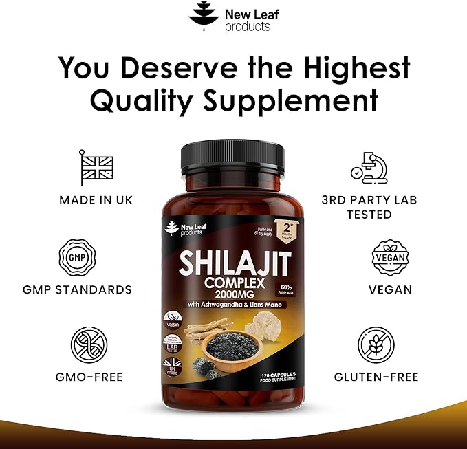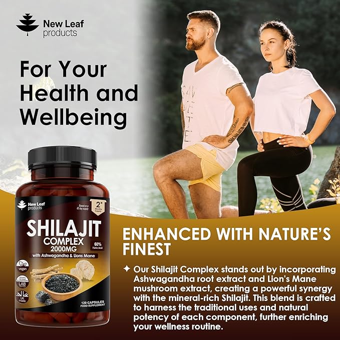 ОТКРОЙТЕ ДЛЯ СЕБЯ СИЛУ КОМПЛЕКСА МУМИЕ NEW LEAFS - Погрузитесь в древнюю мудрость с комплексом мумие от New Leafs, мощной смесью традиционных элементов, предлагающей 120 капсул в бутылке для двухмесячного запаса. Каждая порция содержит 2000 мг мумие, обогащенного экстрактом корня ашваганды и экстрактом гриба львиная грива. Мумие, добываемое в нетронутых высотах Гималаев, представляет собой смолу, известную своим богатым содержанием 60% фульвокислоты, повышающей общую эффективность смеси.