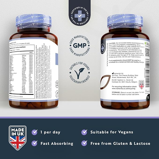 ✔ ПОЧЕМУ МУЛЬТИВИТАМИННАЯ И МИНЕРАЛЬНАЯ ДОБАВКА NUTRAVITA? - Наши мультивитаминные таблетки для мужчин и женщин содержат 26 активных витаминов и минералов, которые были тщательно отобраны, чтобы поддерживать вас на ежедневной основе. Кроме того, наша добавка поставляется с фантастическим 12-месячным запасом, каждая из 365 веганских таблеток содержит преимущества 26 основных активных витаминов и минералов.