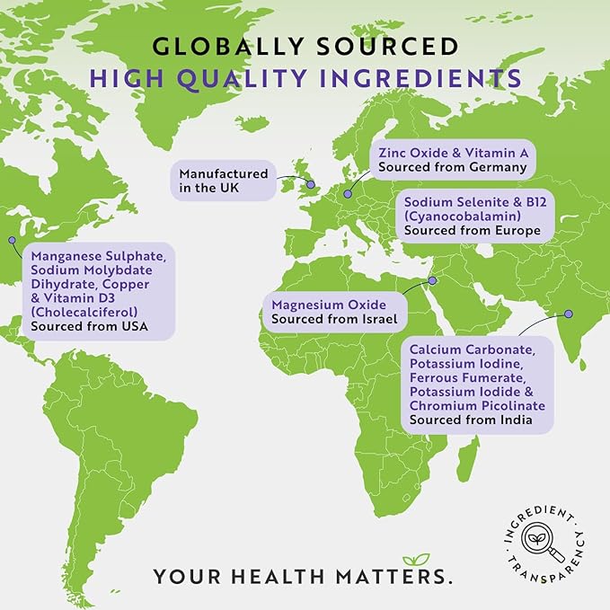 ✔ КАКИЕ 26 ВИТАМИНОВ И МИНЕРАЛОВ ВХОДЯТ В СОСТАВ НАШЕЙ ДОБАВКИ? - Каждая таблетка содержит витамин A (из Германии), витамин D3 (из США), витамин E, витамин K, витамин C, тиамин, рибофлавин, ниацин, витамин B6, фолиевую кислоту, витамин B12 (из Европы), биотин, пантотеновую кислоту, калий, хлорид, кальций, фосфор, магний, железо, цинк (из Германии), медь (из США), марганец, селен, хром, молибден и йод.