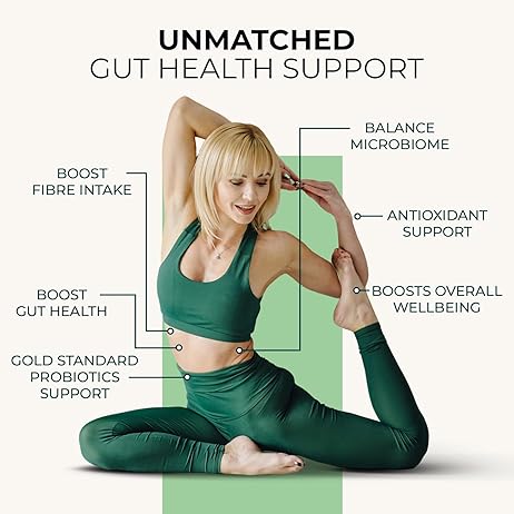 10-в-1 суперфуд порошок для здоровья кишечника - Каждая порция сочетает в себе семь суперфудов, богатых пребиотическими волокнами, с тремя уникальными штаммами пробиотиков (2 миллиарда КОЕ на порцию), способствующими сбалансированной микробиоте, регулярности и общему благополучию.
