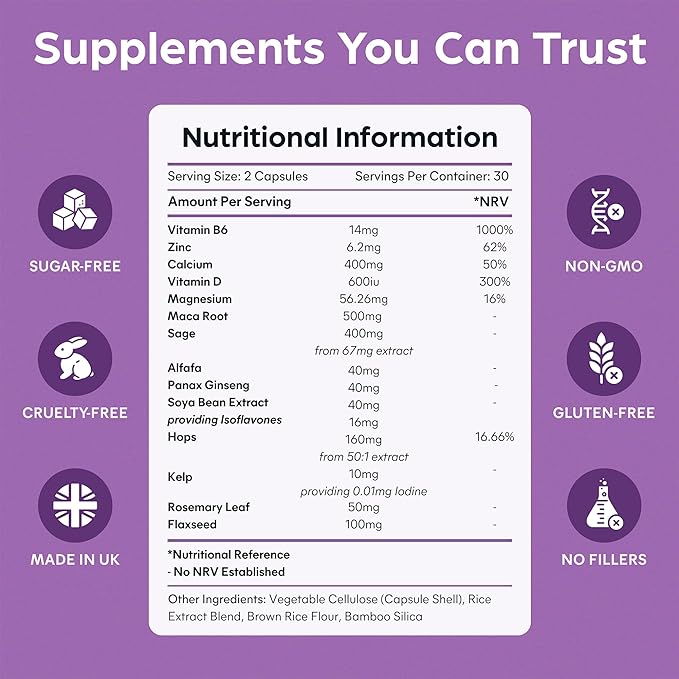 ⭐ ДОБАВКИ, КОТОРЫМ МОЖНО ДОВЕРЯТЬ - Наша отмеченная наградами формула помогла тысячам женщин вернуться к равновесию. Произведено на предприятии в Великобритании, сертифицированном по стандарту GMP, и мы следуем самым высоким стандартам качества, чистоты и эффективности.