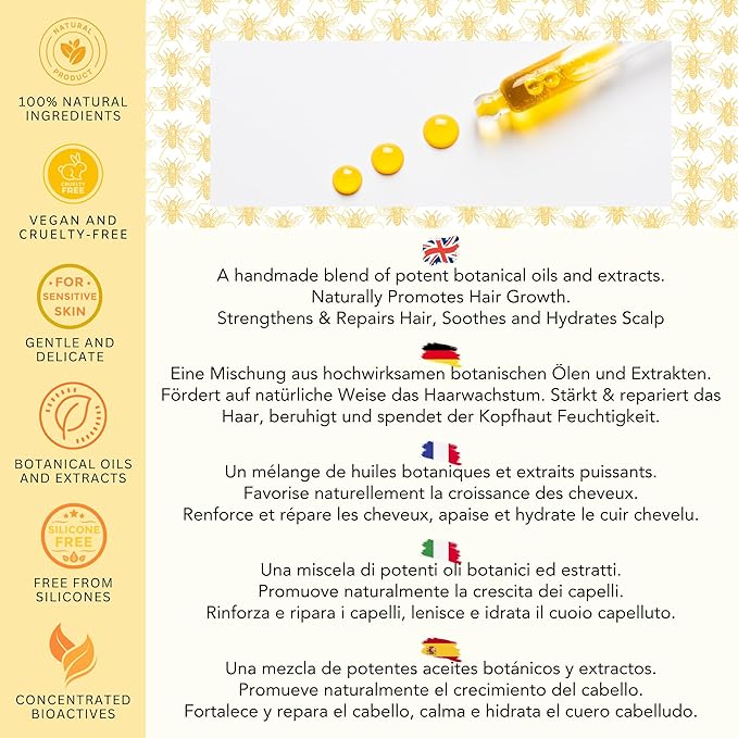 100% натуральное масло для роста волос с тщательно отобранными ингредиентами, которые способствуют росту и силе волос. Это натуральное масло для роста волос не только повышает их прочность и стимулирует рост, но и эффективно уменьшает выпадение волос, способствуя общему здоровью кожи головы и питая корни волос.