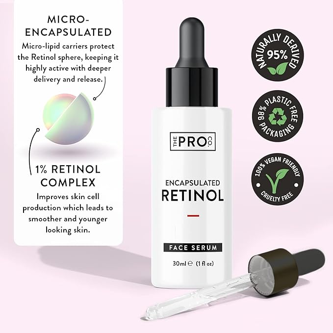 Об этом товаре ◇ МОЩНАЯ ФОРМУЛА РЕТИНОЛА – Эта формула на 96% состоит из сыворотки с ретинолом натурального происхождения, которая была разработана, чтобы быть более щадящей для кожи. Ретинол является чрезвычайно мощным ингредиентом, который помогает улучшить множественные признаки старения. Он стимулирует обновление клеток в коже и стимулирует выработку коллагена, обеспечивая коже максимальное увлажнение и повышенную эластичность, сводя к минимуму мелкие и глубокие морщины, делая кожу более гладкой и упругой. ◇ УЛУЧШЕННАЯ АБСОРБЦИОННАЯ ТЕХНОЛОГИЯ МИКРОИНКАПСУЛИРОВАННОГО РЕТИНОЛА - в нашей сыворотке ретинола используется передовая технология 100% натурального микроинкапсулированного ретинола. Ретинол заключен в умную систему носителей, которая защищает молекулу и позволяет ей медленно высвобождать активный ингредиент в кожу, что означает, что он может проникать глубже в слои кожи, обеспечивая максимальное впитывание. ◇ ОДОБРЕНО PETA CRUELTY FREE И УКАЗАНИЯ ПО ПРИМЕНЕНИЮ – Наш 100% веганский продукт был одобрен крупнейшей организацией по защите прав животных в мире, PETA, поэтому вы можете спокойно делать покупки, зная, что наши продукты полностью не тестируются на животных. Для достижения наилучших результатов мы рекомендуем наносить 4 капли утром на чистую сухую кожу лица и шеи, мягко массировать кончиками пальцев до полного впитывания сыворотки. ◇ ЭКОЛОГИЧЕСКОЕ ОБЯЗАТЕЛЬСТВО PRO CO. - Мы стремимся нейтрализовать наш углеродный след и решать экологические проблемы, создавая экологически чистую упаковку и используя ингредиенты природного происхождения. Небольшое количество пластика, которое мы используем, полностью пригодно для вторичной переработки, что сводит к минимуму наше воздействие на окружающую среду. ◇ ПОЧЕМУ ИМЕННО PRO CO.? – Pro Co. обеспечивает высокую производительность красоты. Все наши продукты разработаны с использованием проверенных активных ингредиентов, которые подтверждены наукой и имеют заметные результаты после использования. Все наши продукты подходят для веганов и вегетарианцев, не тестируются на животных и являются максимально натуральными. Ингредиенты: Вода, глицерин, каприловый/каприновый триглицерид, диметикон, пропандиол, цитрат глицерилстеарата, ретинилпальмитат, лаурилглюкозид, маннитол, кроссполимер алкилакрилата C10-30, децилглюкозид, цетиловый спирт, фосфатидилхолин, ксантановая камедь, диацетат глутамата тетранатрия, сорбат калия, этилгексилглицерин, бензоат натрия, хлорид натрия, гидроксид натрия, лимонная кислота, феноксиэтанол.