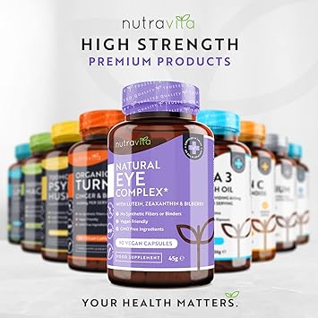 ✔︎ ПОЧЕМУ НАТУРАЛЬНЫЙ КОМПЛЕКС ДЛЯ КОЖИ ВОКРУГ ГЛАЗ NUTRAVITA? – Каждая капсула в нашем натуральном комплексе для глаз содержит лютеин (20 мг), зеанксантин (2,5 мг), экстракт черники (6 мг) и незаменимые витамины для глаз, такие как витамины А (800 мкг), В12 (400 мкг) и цинк (10 мг). Каждая бутылка нашей добавки содержит 90 легко проглатываемых веганских капсул на 3 месяца.
