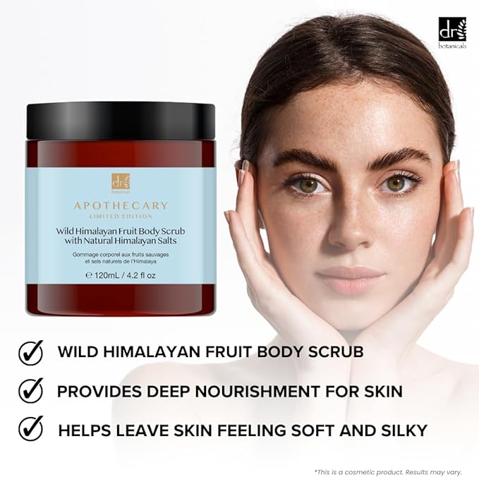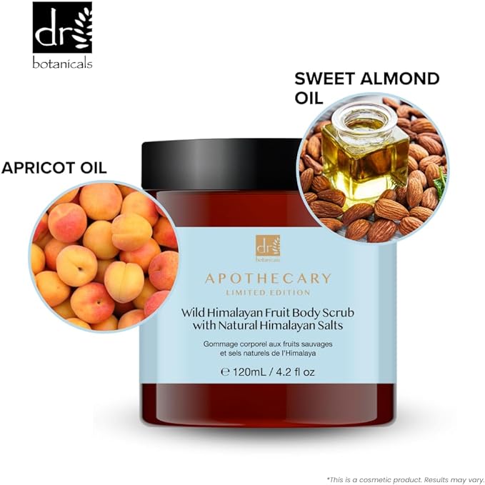 Скраб для тела Dr Botanicals с дикими гималайскими фруктами | Отшелушивающее средство для тела с натуральными гималайскими солями — питает вашу кожу | Детоксикация и омоложение вашего тела - Формула для смягчения кожи - 120 мл