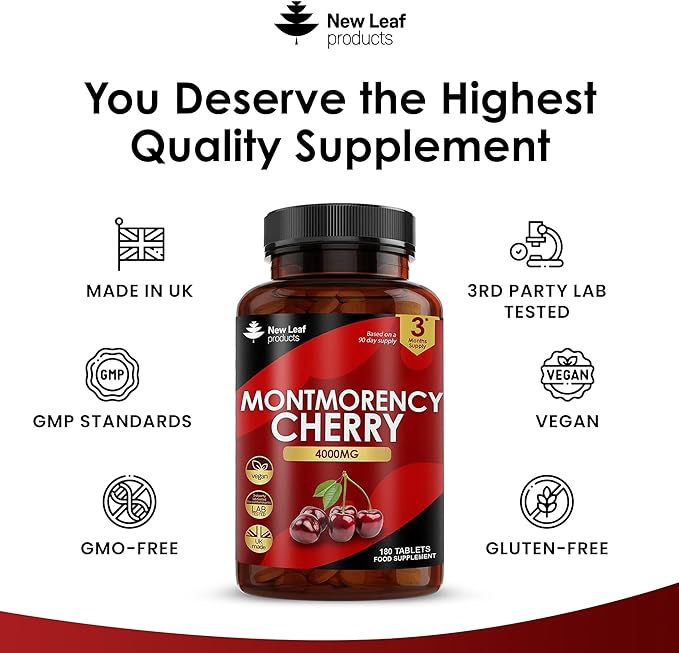 ПОДХОДИТ ДЛЯ ВЕГАНОВ И ПРЕМИУМ КАЧЕСТВА - Каждая таблетка содержит чистый экстракт терпкости, не содержит ГМО и не содержит сахара или красителей. Изготовлено в соответствии со стандартами GMP. Производству добавок New Leaf Tart Cherry уделяется большое внимание на всех этапах от сырья до доставки.