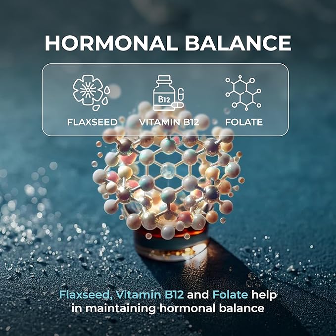 Поддержка гормонального баланса: поддерживает здоровый гормональный баланс с помощью натуральных ингредиентов, таких как льняное семя, витамин B12 и фолиевая кислота