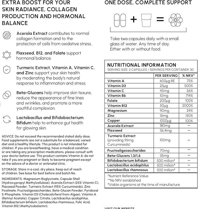 Комплексная добавка для ухода за кожей: комплексные мультивитамины с бета-глюканами и необходимыми питательными веществами для улучшения текстуры кожи и уменьшения мелких морщин